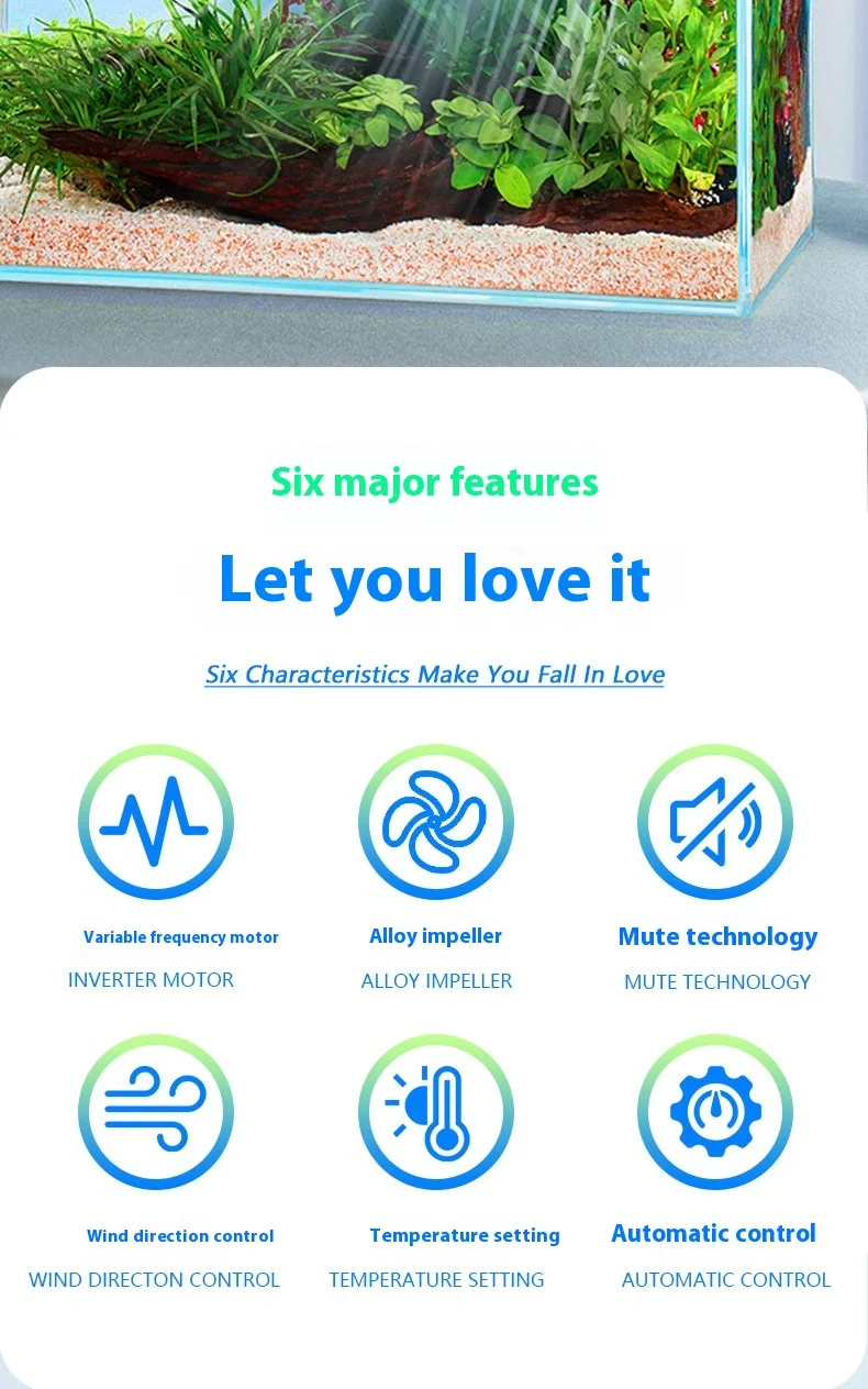 5. Automatically adjusts the aquarium water temperature by rotation.