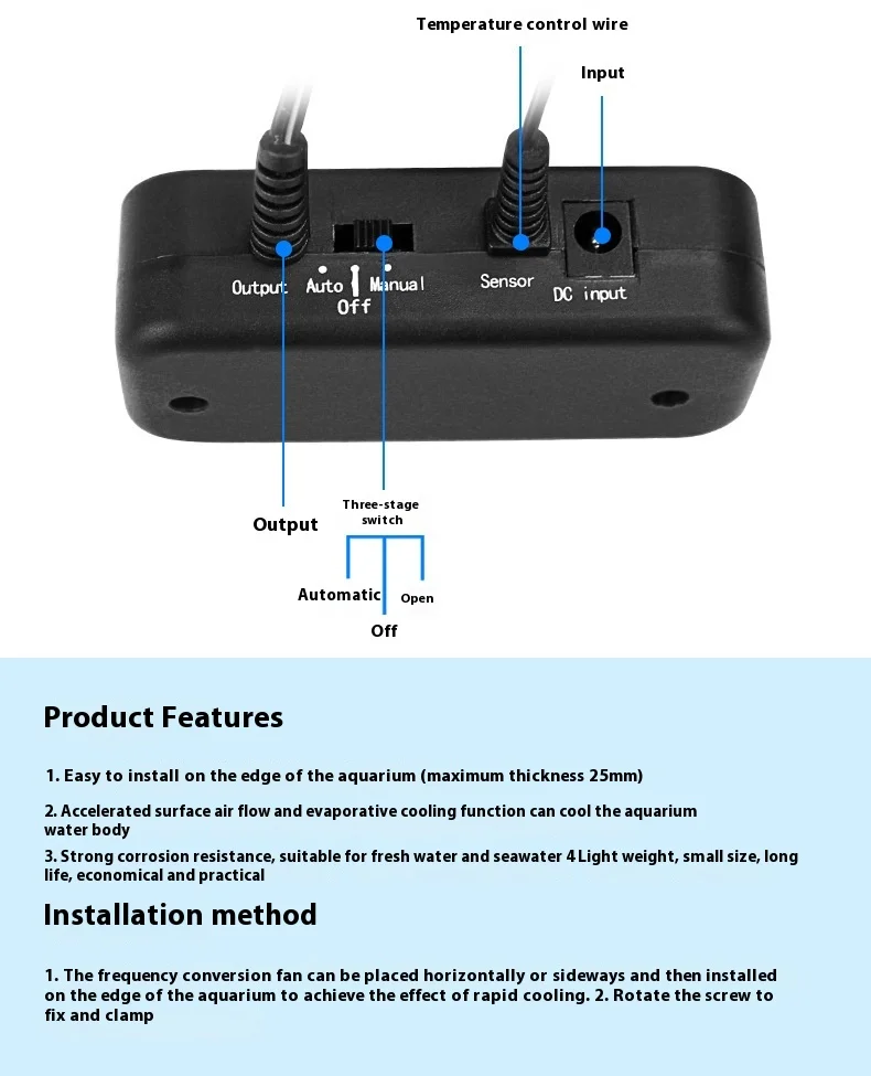 1. Easy to install on the edge of the aquarium (maximum thickness 15mm)